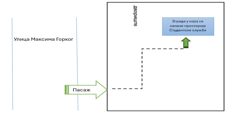 - адреса уписа: Максима Горког 26, Нови Сад (улаз је из дворишног дела до којег се долази након што се прође кроз пасаж и скрене лево, а након тога потребно је скренути десно-слика 1).